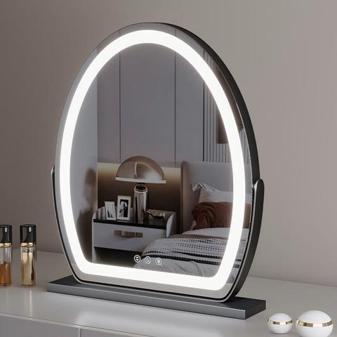 Hot Selling Art Deco Estilo Oval Maquiagem Desktop LED Espelho com Luz Beleza Preencher Material De Vidro Leve para Ocasiões De Aniversário