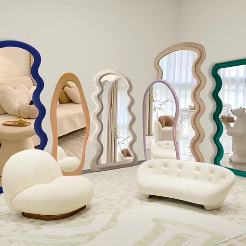 Quadro elegante Forma ondulada Corpo inteiro Comprimento Wall Mounted Sala Espelho
