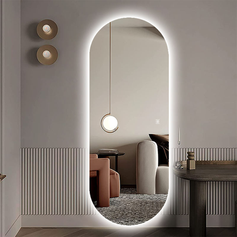 Fábrica de Abastecimento Grande Vidro LED Iluminado Piso Permanente Corpo Inteiro Vestir Suspensão Montada Sala Espelho