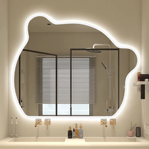 Elegante moderno LED Smart Touch Screen Espelho Irregular Grande Parede Frameless Dressing Mirror