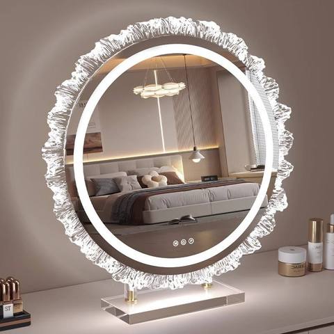 Modern Art Deco espelho acrílico maquiagem com luzes LED Terceiro exame simulado Stepless escurecimento Material Vidro